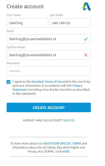 Stap3: Vul je naam, email en wachtwoord in en maak het account aan.